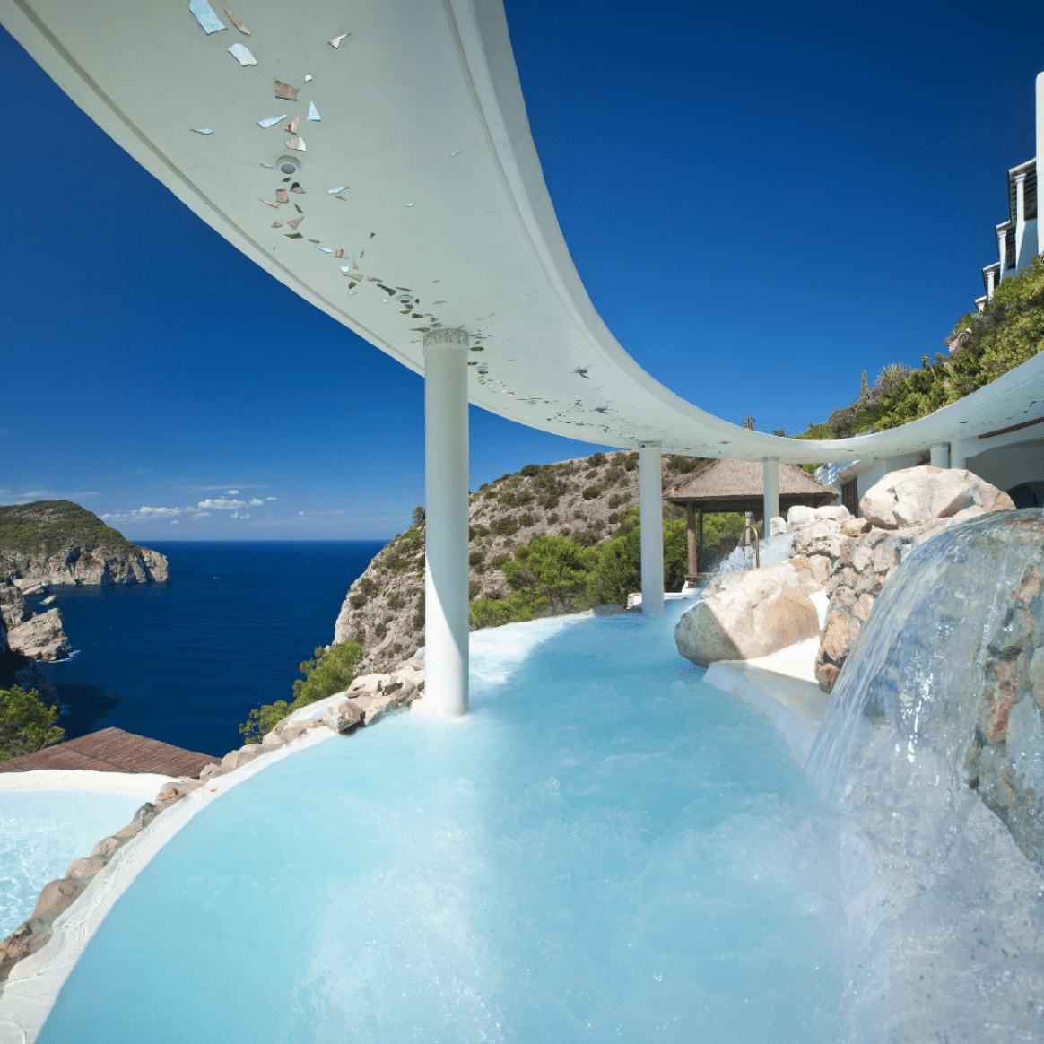Okay, folks, we’re kicking off with a bang! Hacienda Na Xamena is nothing short of iconic, thanks to its jaw-dropping ‘hanging pools’ that will leave you awestruck. Nestled amidst tranquil, forest-covered cliffs above Port de Sant Miguel, this exclusive resort offers five-star luxury at its finest. Their La Posidonia spa takes inspiration from the protected sea grass that grows around the island. Fancy a touch of SkinCeuticals magic? Their Detox or Corrector facials are pure anti-ageing wizardry!